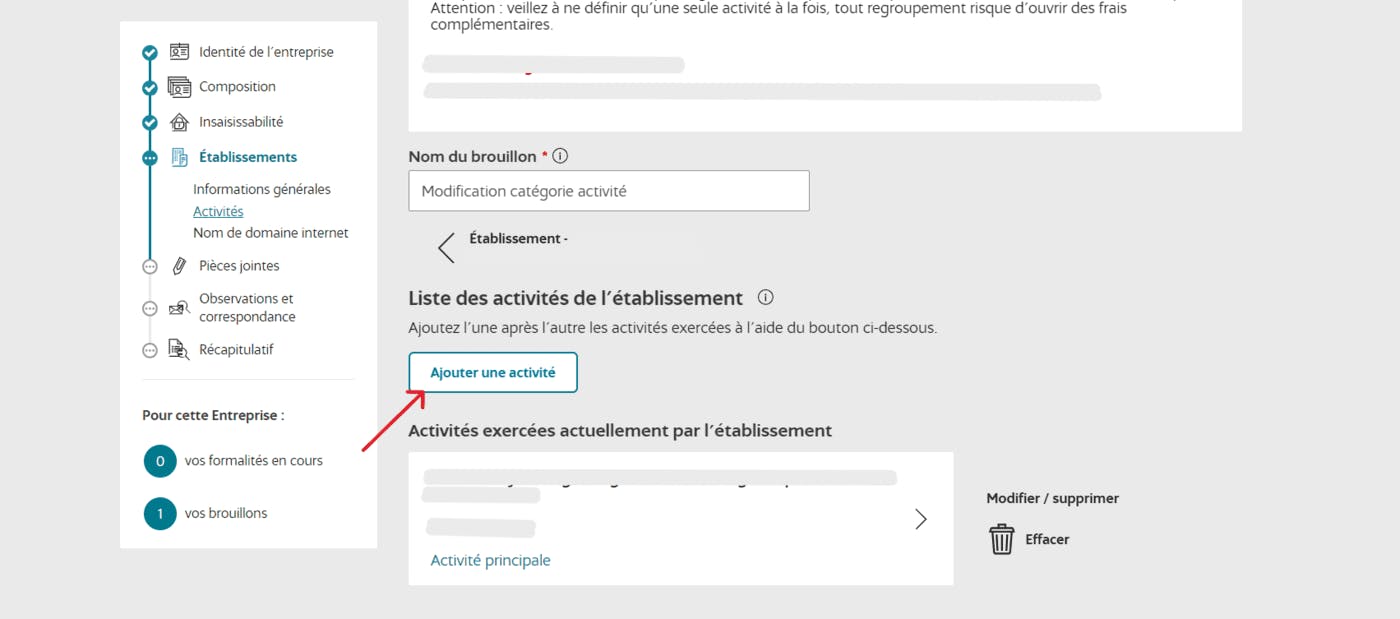 Attention : ne pas confondre ajout d’activité et changement d’activité. Un changement d’activité signifie que l’activité exercée est remplacée par une autre activité, sans qu’il y ait un ajout d’activité.