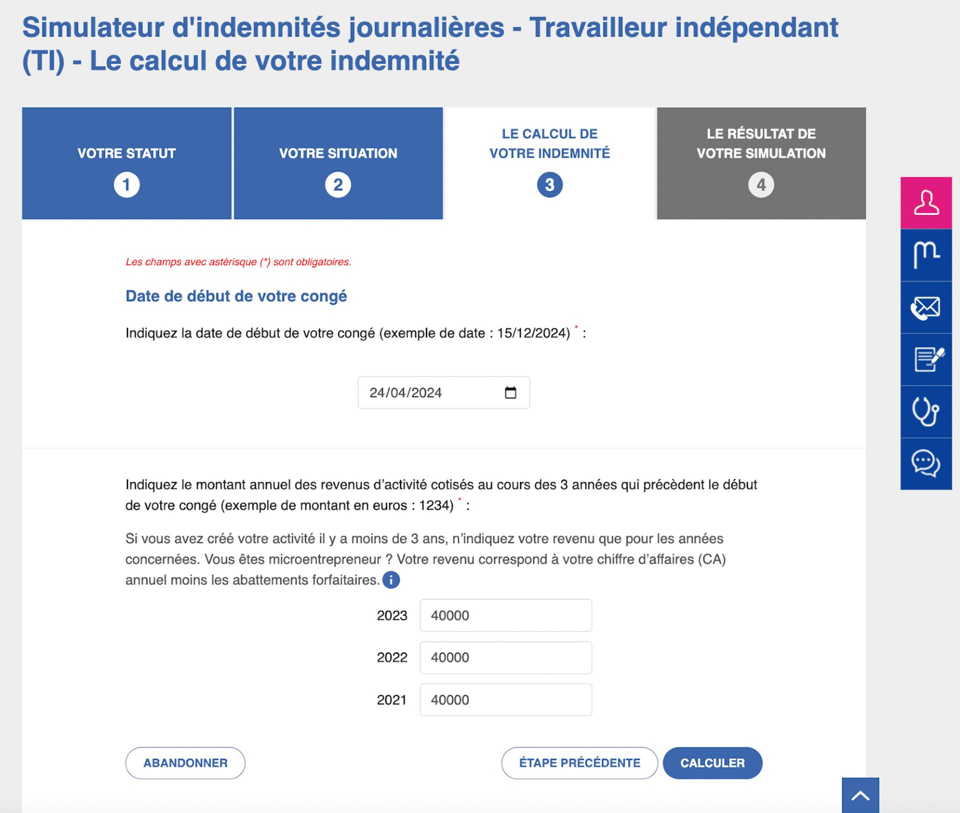 3- Indiquez la date de début de votre congé et remplissez votre chiffre d’affaires