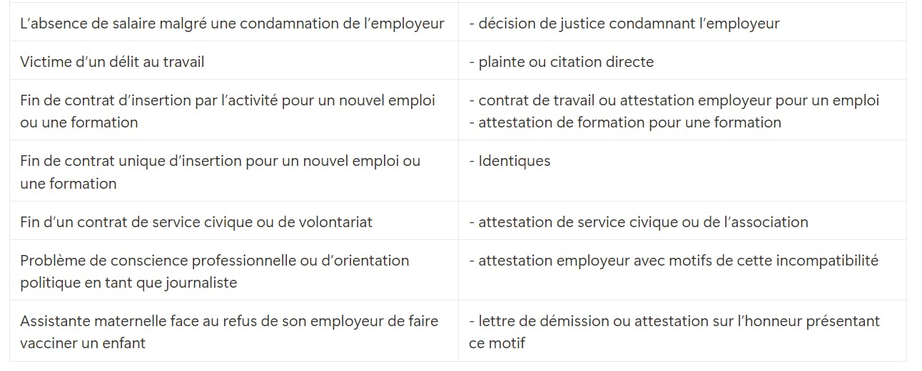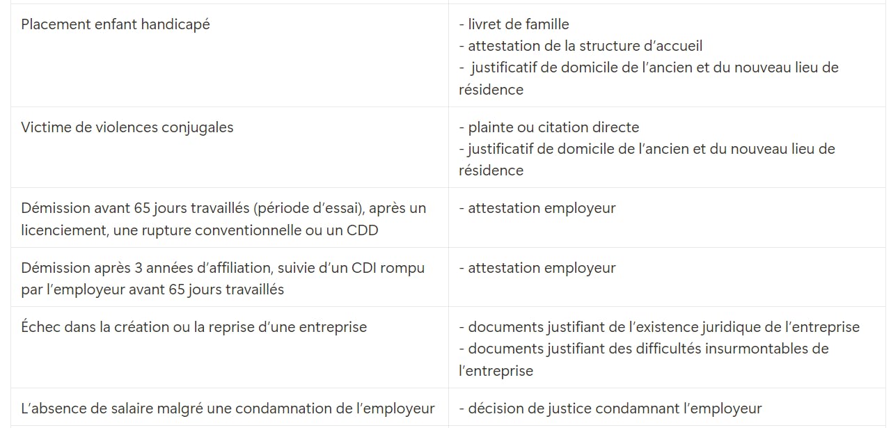 les violences conjugales, la fin d’un projet entrepreneurial, la fin d’un contrat de travail avant 65 jours travaillés, la fin d’un contrat d’insertion… Sans que cette liste ne soit exhaustive.