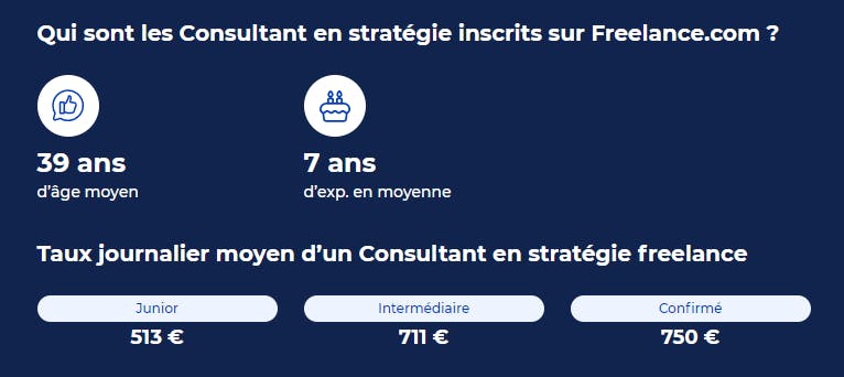D’ailleurs, d’après la plateforme freelance.com, les consultants en stratégie indépendants ont en moyenne 39 ans. Cet âge moyen reflète l’expérience généralement attendue pour des consultants à leur compte.