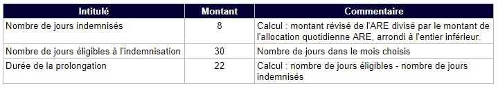 Lorsqu’il travaille, le salarié porté cotise, par l’intermédiaire de sa société de portage salarial, à Pôle emploi. L’activité en portage salarial lui permet donc de prolonger les droits au chômage. Chaque jour d’indemnisation non perçue va prolonger d’autant la période d’indemnisation. Revenons à notre exemple précédent.